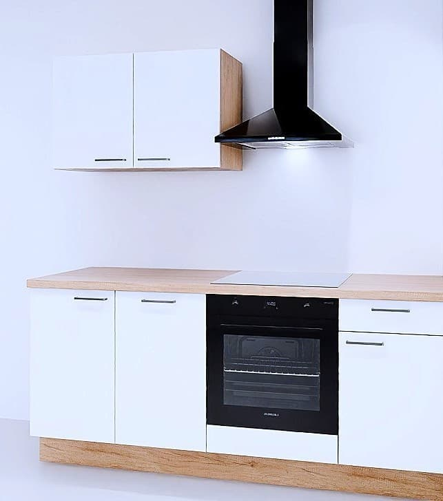 Kuchyňská linka 195 cm, skříňky v bílé matné barvě, kompletně smontovaná, velmi snadná montáž, kompletní kuchyňská linka včetně pracovní desky bez spotřebičů , vyrobeno v Německu