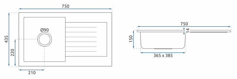 | Hloubka dřezové komory: | 150 |