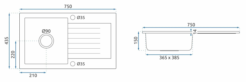 | Hloubka dřezové komory: | 150 |