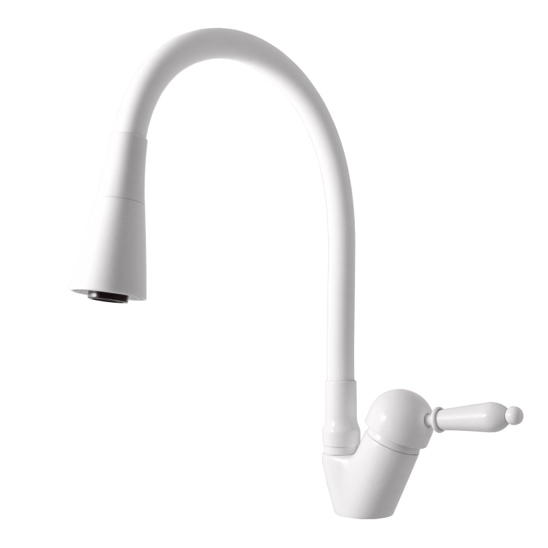 LABE Baterie dřezová stojánková s otočným ramínkem se sprchou bílá - lesklá L506.5/13B
