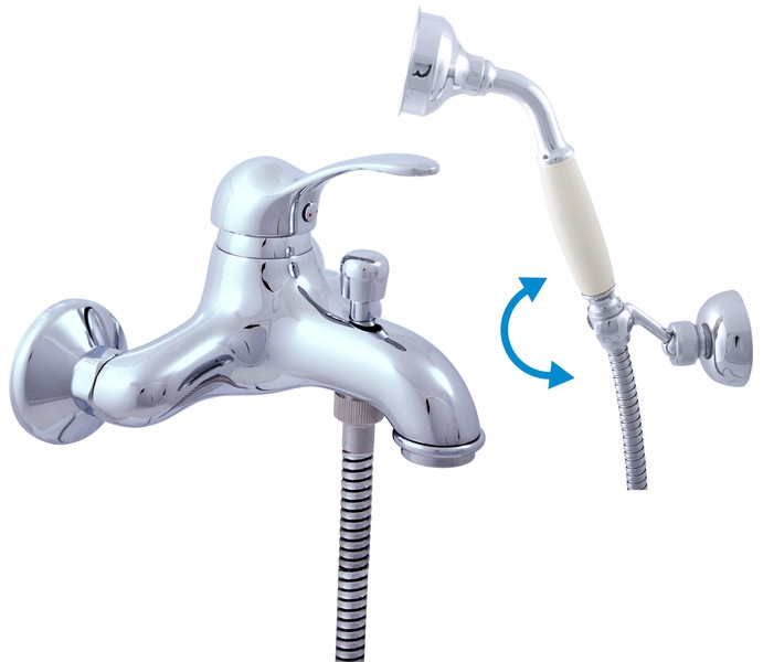 Vodovodní baterie vanová nástěnná se sprchou a otočným držákem.
