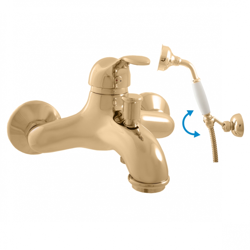 RAV SLEZÁK LABE Baterie vanová se sprchou a otočným držákem - zlato L054.5/2Z