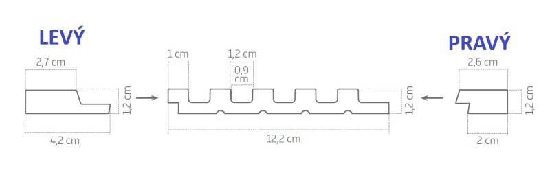 Rozměry panelu PRAVÉHO ukončovacího profilu SÉRIE A: