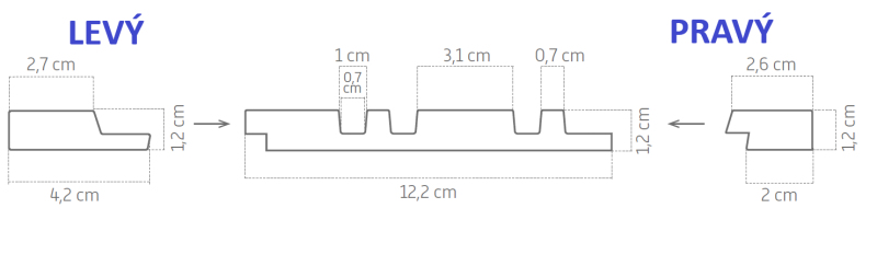 Rozměry panelu PRAVÉHO ukončovacího profilu SÉRIE M: