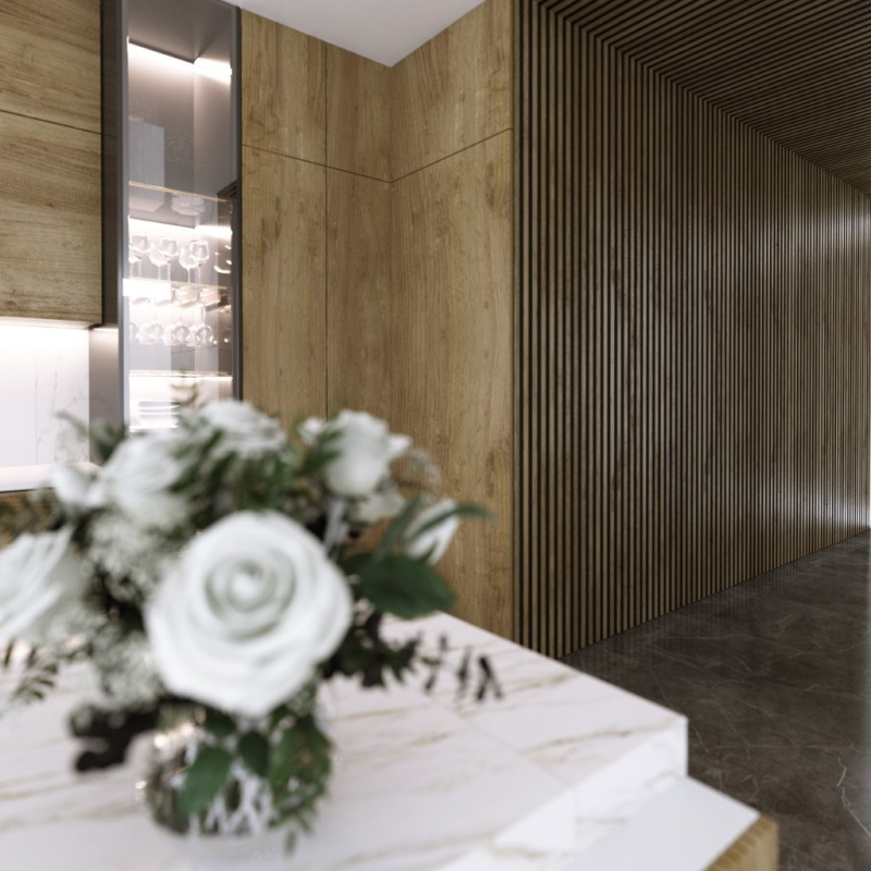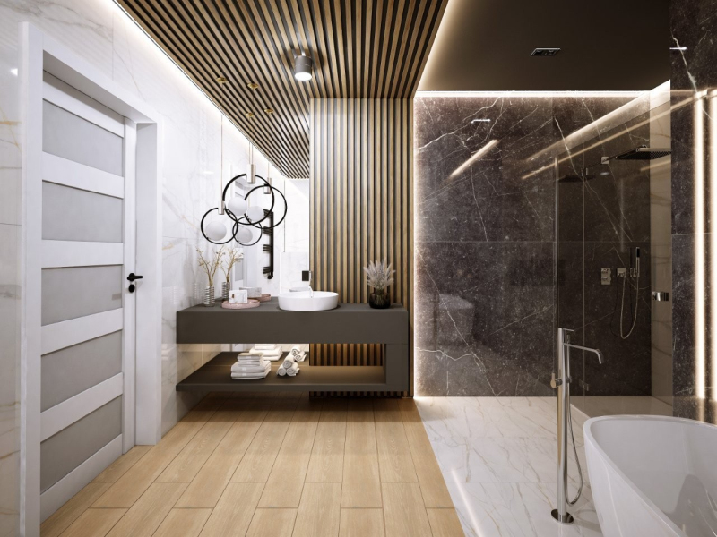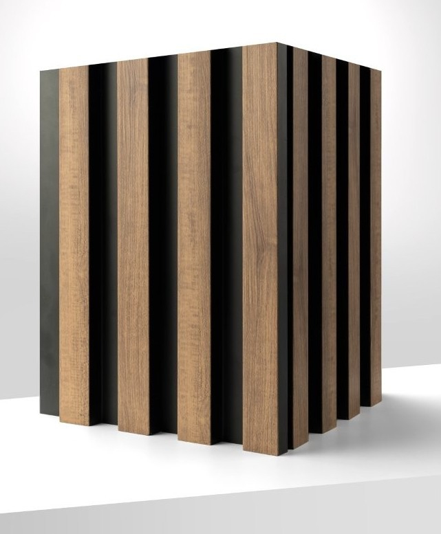 Lamelová obklad panel je určen pro montáž na stěny i strop místnosti. Je odolný vůči vlhku, takže je vhodný i do koupelen. Snadno a rychle se instaluje lepením (pero drážka) a jak na výšku, tak i na šířku.