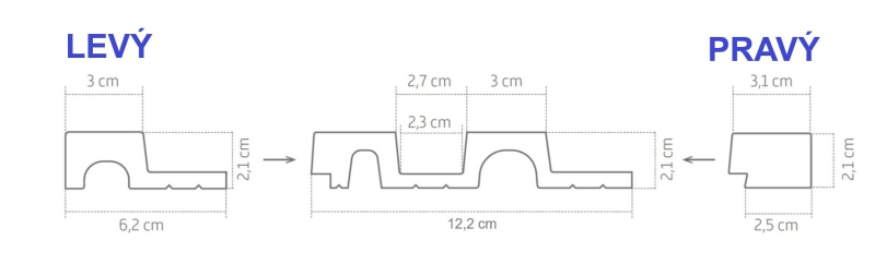 Rozměry panelu PRAVÉHO ukončovacího profilu SÉRIE V: