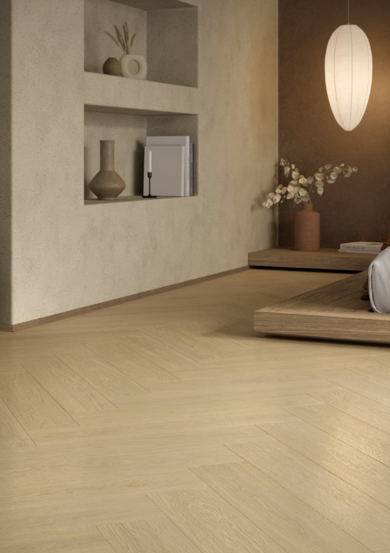 Laminátová podlaha Krono Original Herringbone cream darcy oak 63x12,6 cm HRGBK844