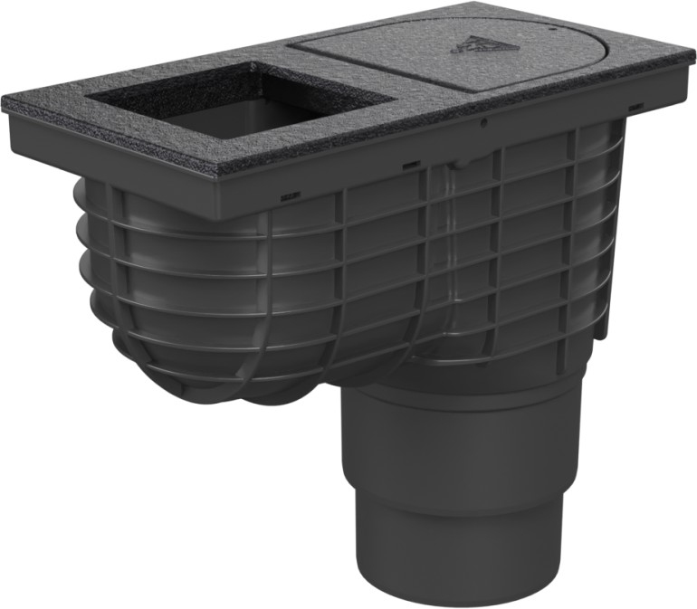 Lapač střešních splavenin spodní D110/125, litinový povrch, pro hranatý svod 100
