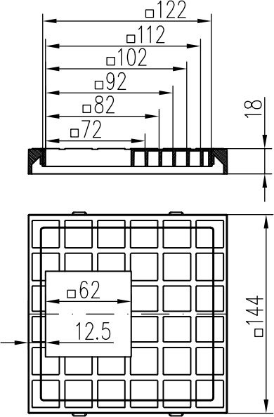 Lapač střešních splavenin spodní D110/D125, hranaté víko 325 J