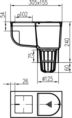 Lapač střešních splavenin spodní D125, litinový povrch, pro hranatý svod 100