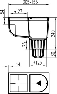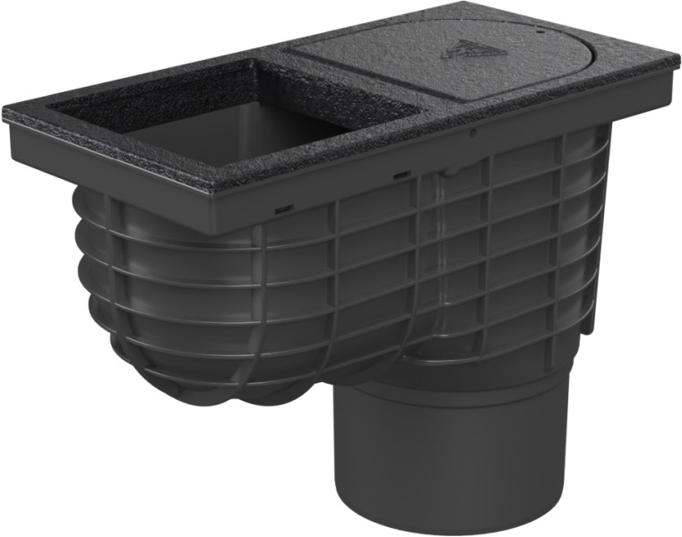 Lapač střešních splavenin spodní D125, litinový povrch, pro hranatý svod 125