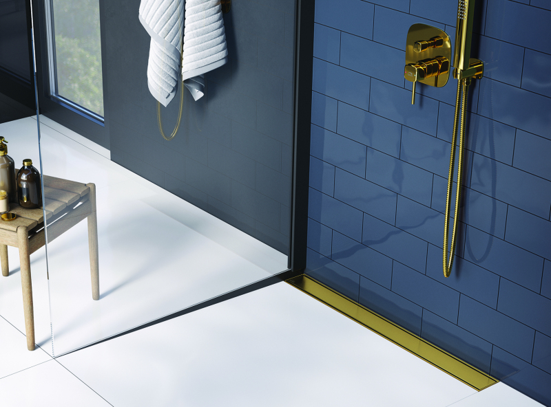 Laveo BASSO COB_G51D Podlahový žlab ke stěně 500, zlatá