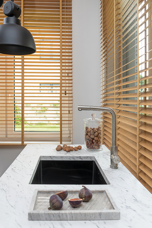 Stojánková dřezová baterie s vytahovacím L výtokem.