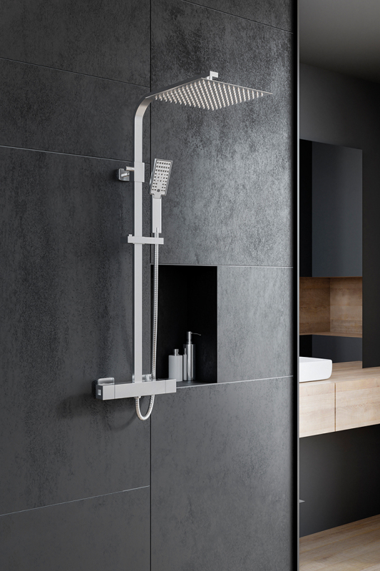 Laveo KVADRATO PLQ_00TD Sprchový set s termostatickou baterií, chrom