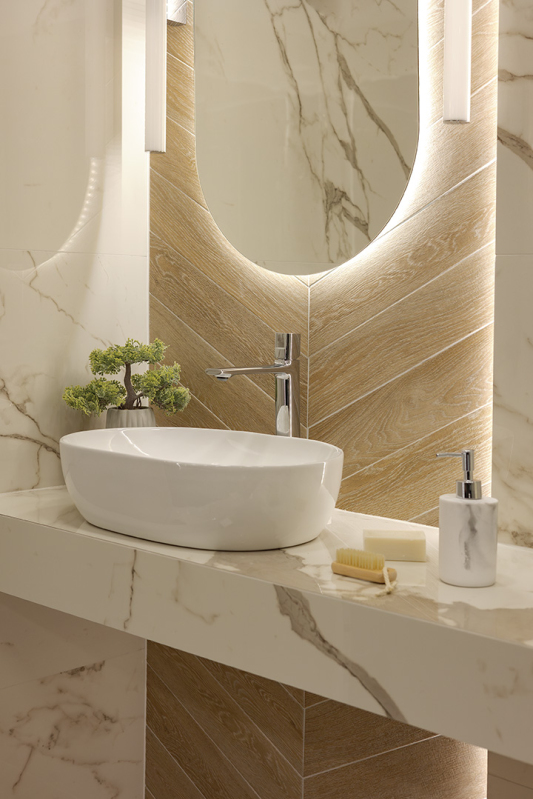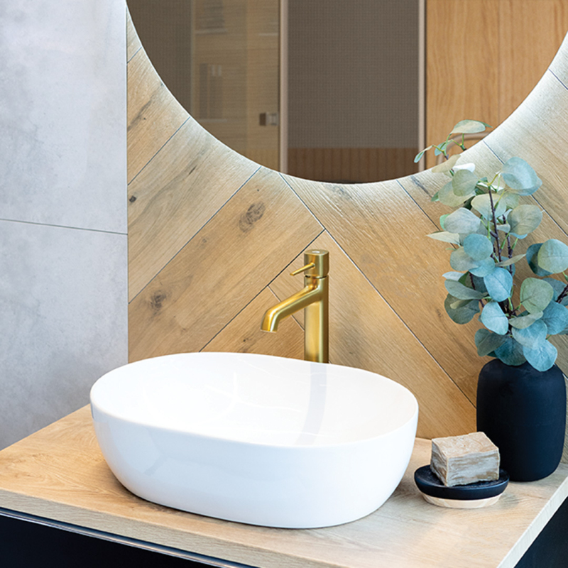 Umyvadlo na desku Lomami – moderní minimalismus v oválném tvaru