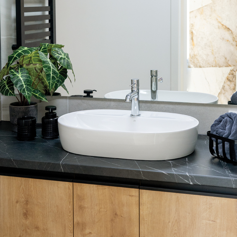 Série Lomami jsou moderní oválná umyvadla na desku, která spojují eleganci a vysokou funkčnost. Tato umyvadla vyrobená z vysoce kvalitní keramiky v klasické bílé barvě se vyznačují jemnými zaoblenými hranami, které jim dodávají harmonický a elegantní vzhled. Hladký, glazovaný povrch umyvadla nejen dodává svěžest a prostornost každému interiéru, ale také usnadňuje čištění díky hydrofobním vlastnostem keramiky.