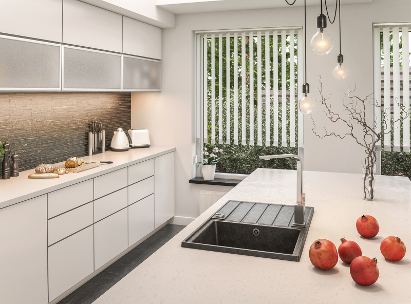 Kuchyňský dřez včetně sifonu s automatickou výpustí.