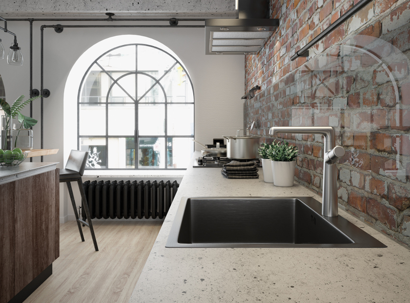Pohyblivý výtok, určený pro dřezy s jednou miskou.