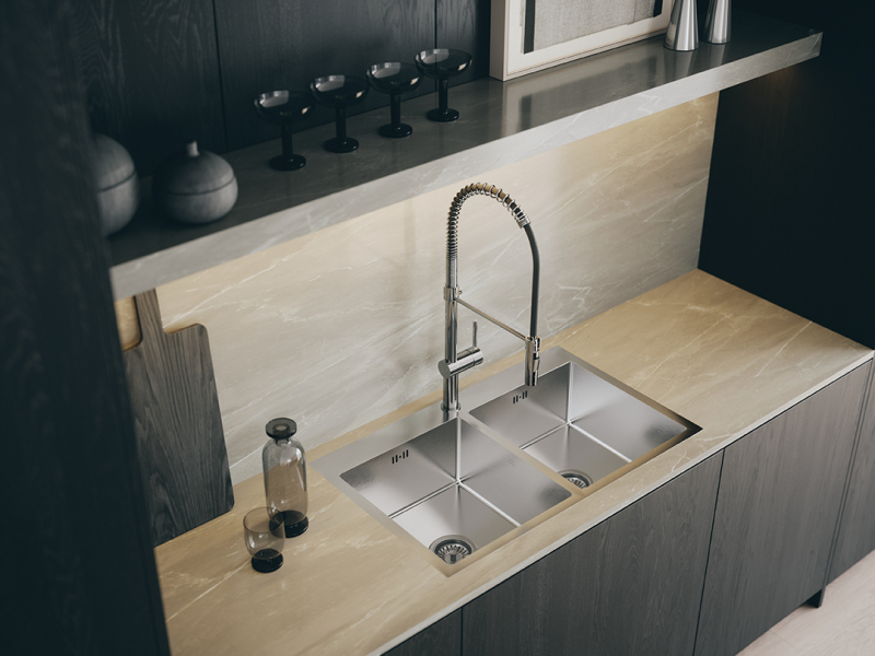 Standardní chromovou povrchovou úpravu lze kombinovat s jakýmkoli typem dřezu - ocelovým nebo žulovým.