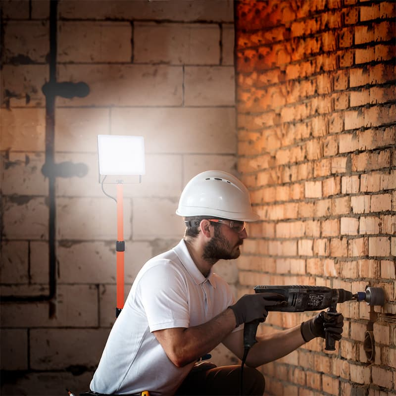LED reflektor s vysokým stojanem, 50W, 4500lm, 4000K, kabel se zástrčkou, IP65