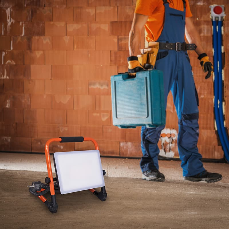 LED reflektor se sklopným stojanem, 100W, 9000lm, 4000K, kabel se zástrčkou, IP65