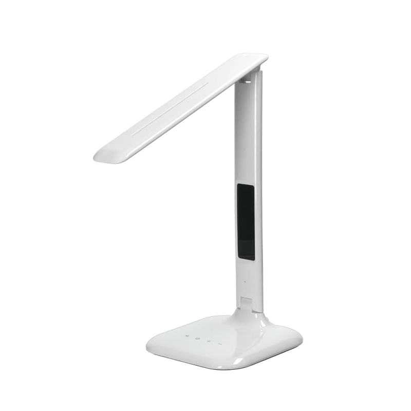 LED stmívatelná stolní lampička s displejem, 7W, volba teploty světla, bílý lesk