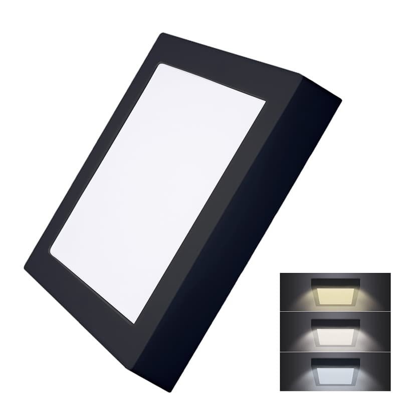 LED mini panel CCT, přisazený, 18W, 1530lm, 3000K, 4000K, 6000K, čtvercový, černá barva