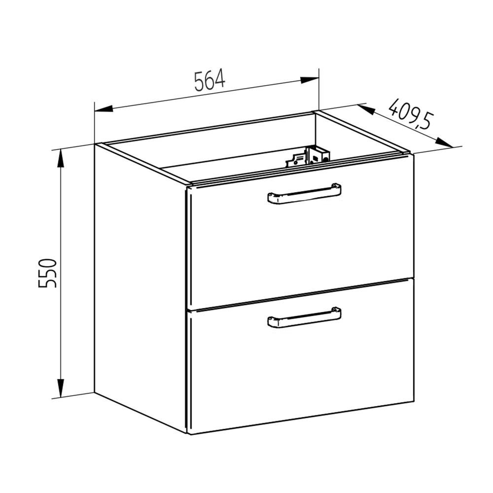 Leny skříňka s keramickým umyvadlem, 600x675x420 mm, spodní, bíla lesklá, 2 zásuvky CN811N