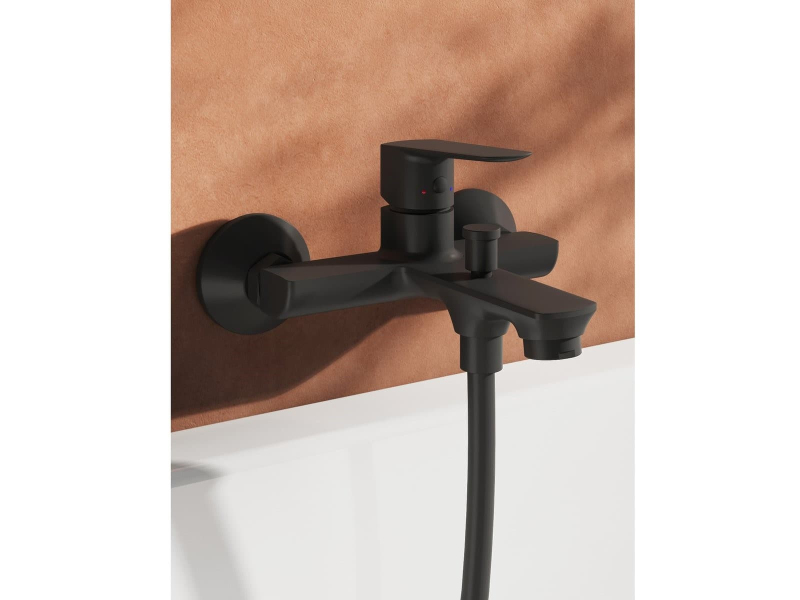 Nástěnná vanová baterie Life, bez sprchového setu. V černém provedení.