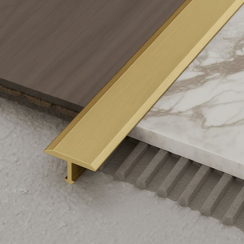 Lišta dělící "T " Eviso žlutá kartáčovaný, mosaz délka 270 cm, výška hrany 2 mm, FLMT0214C