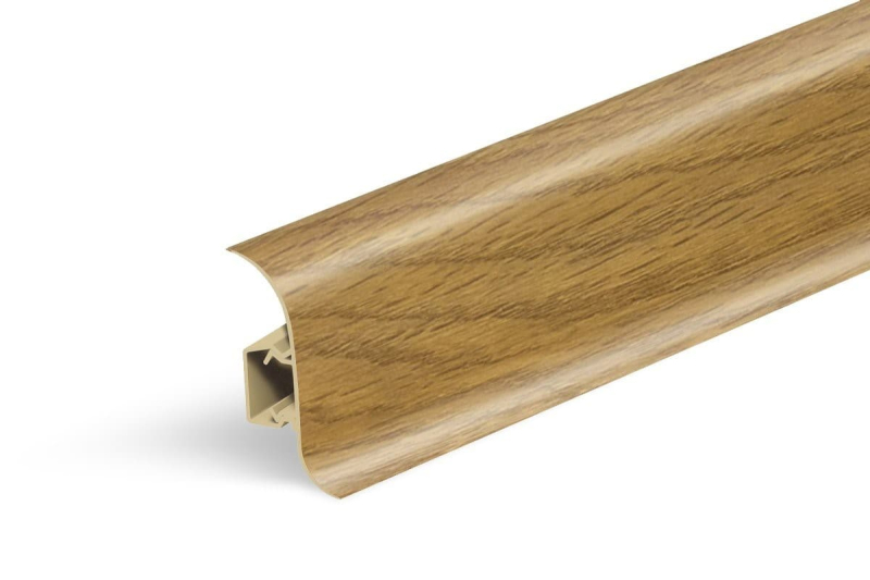 Lišta soklová v dřevěném dekoru, o délce 250 cm, s výškou hrany 56 mm