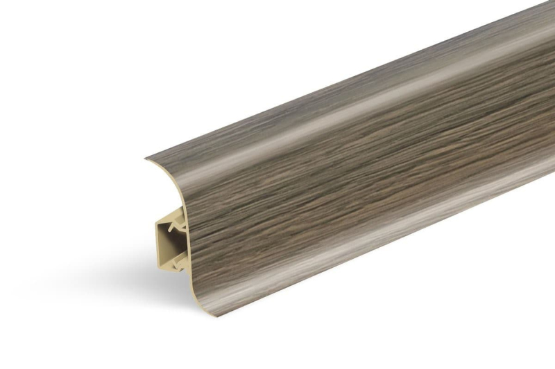 Lišta soklová v dřevěném dekoru, o délce 250 cm, s výškou hrany 56 mm