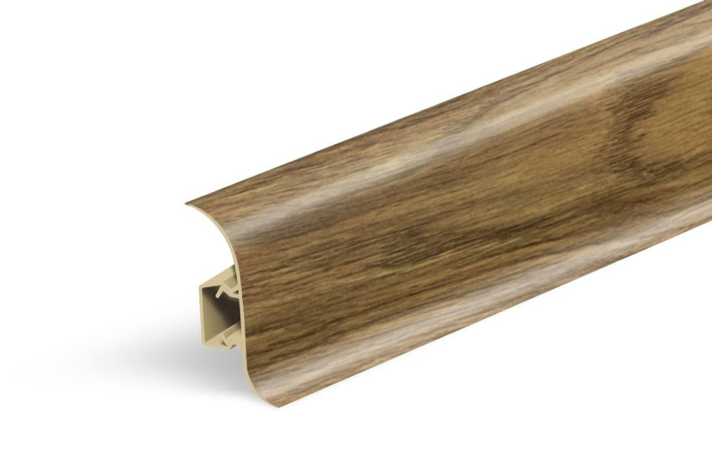 Lišta soklová v dřevěném dekoru, o délce 250 cm, s výškou hrany 56 mm