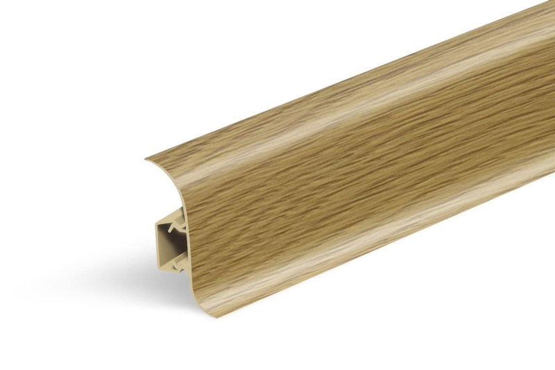 Soklová lišta v dřevěném dekoru, o délce 250 cm, s výškou hrany 56 mm