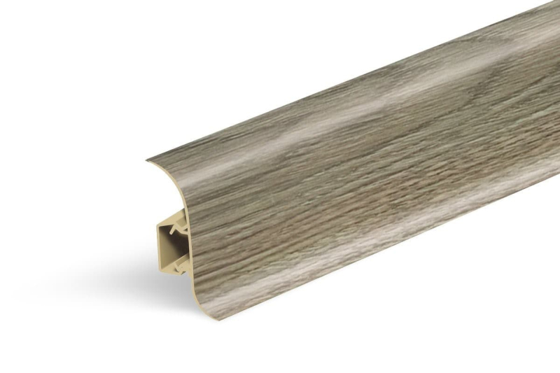 Lišta soklová v dřevěném dekoru, o délce 250 cm, s výškou hrany 56 mm