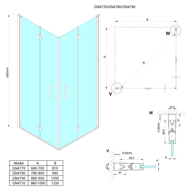 LORO čtvercový sprchový kout 1000x1000 mm, rohový vstup