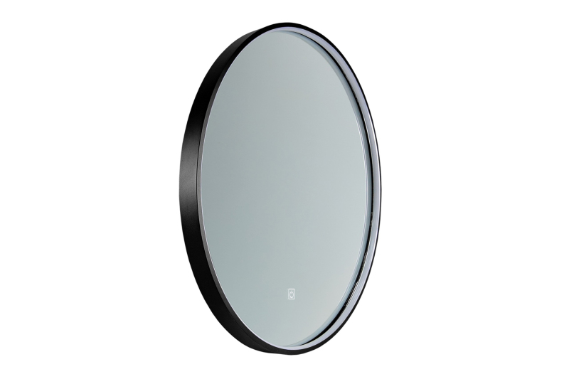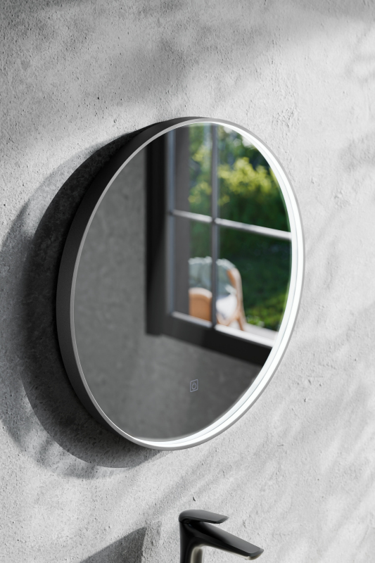 Lustro łazienkowe LED Sirius o średnicy 60cm to funkcjonalny element wyposażenia nowoczesnych łazienek. Okrągła forma została podkreślona czarną ramą oraz zintegrowanym oświetleniem LED, umieszczonym po wewnętrznej stronie ramy, które równomiernie oświetla twarz, ułatwiając codzienne czynności.