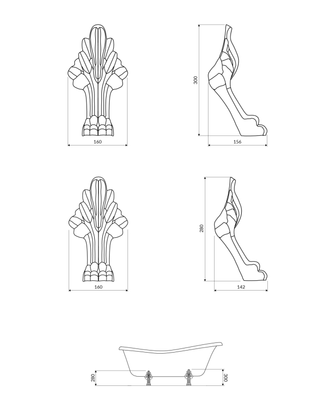 LWIE NOGI maskownice nóg do wanien ATENA, brąz antyczny szczotkowany
