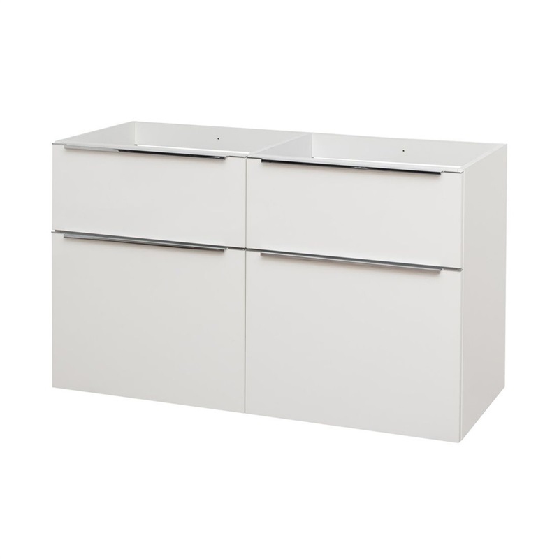 Mailo, koupelnová skříňka 1210 mm, spodní, lesklá bílá, 2 zásuvky. Možno kombinovat s keramickým umyvadlem, popř. s koupelnovou deskou na skříňku nebo nábytkovým keramickým umyvadlem.. Zobrazit více