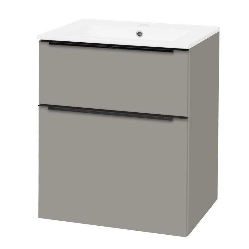 Mereo Mailo – koupelnová skříňka s umyvadlem 61 cm, šedá mat, 2 zásuvky, černé madlo
