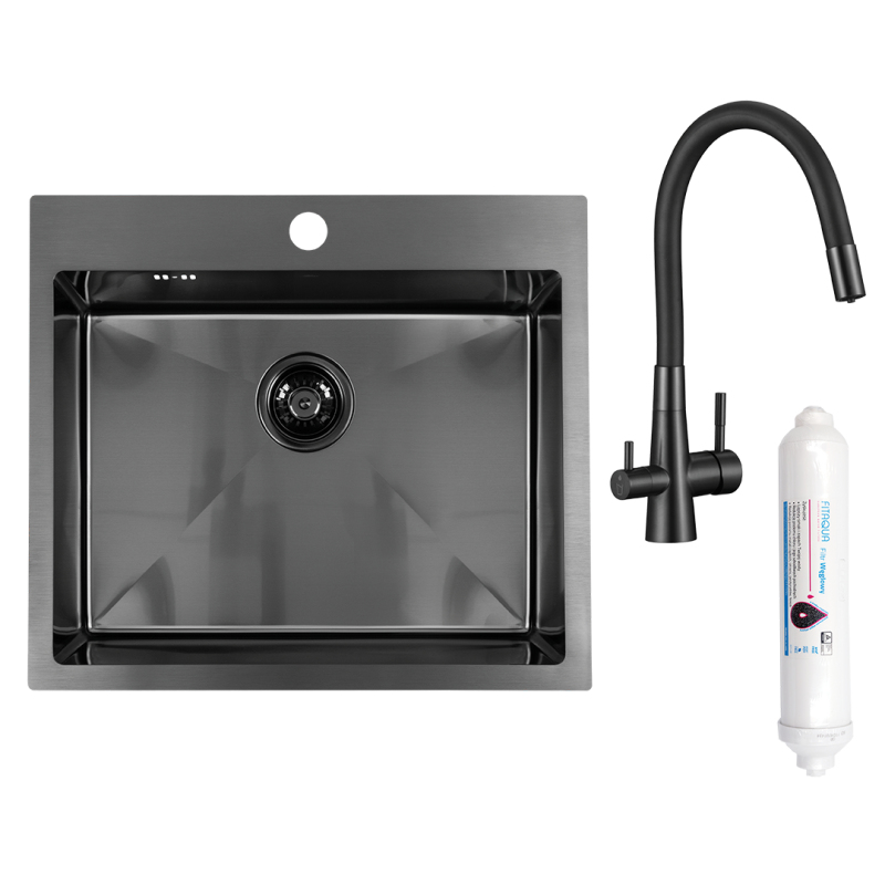 Malawi - 1 bowl sink with siphon and filtering kitchen mixer