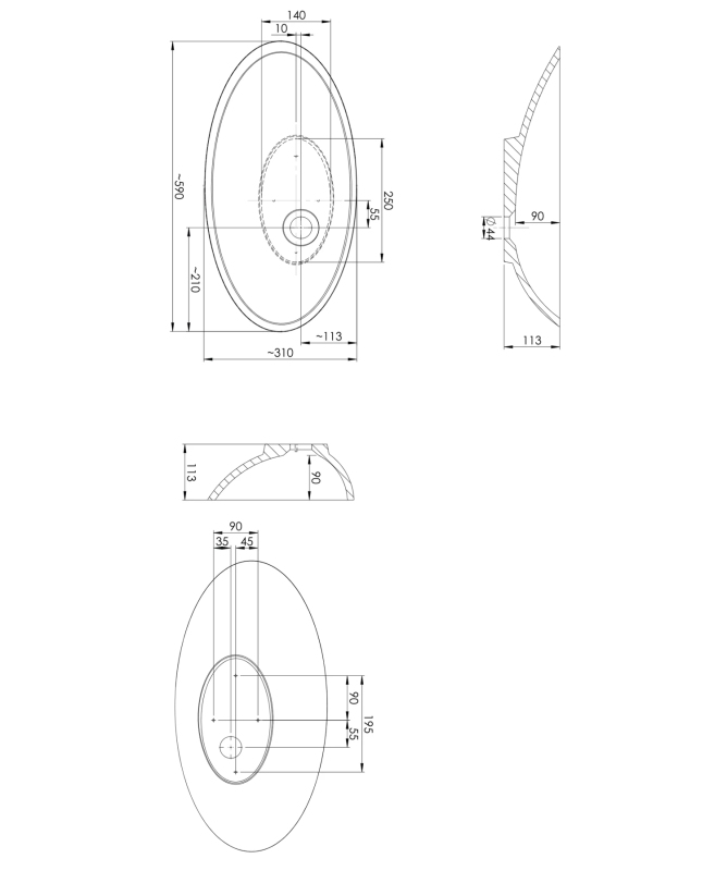 Omnires MALTA M+ umyvadlo na desku, 59 x 31 cm, bílý lesk MALTABP