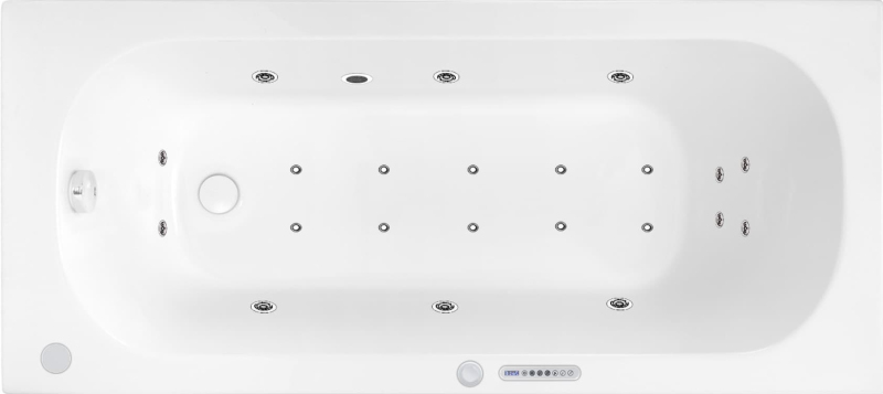 Masážní vana z akrylátu, tloušťka materiálu je 5 mm. Určení vany - levá orientace. Vana je vybavena hydromasáží a airmasáží. Objem vany je 160 litrů. Balení včetně sifonu a nožiček.