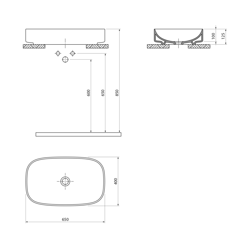 MATTEO keramické umyvadlo na desku 65x40cm, bílá