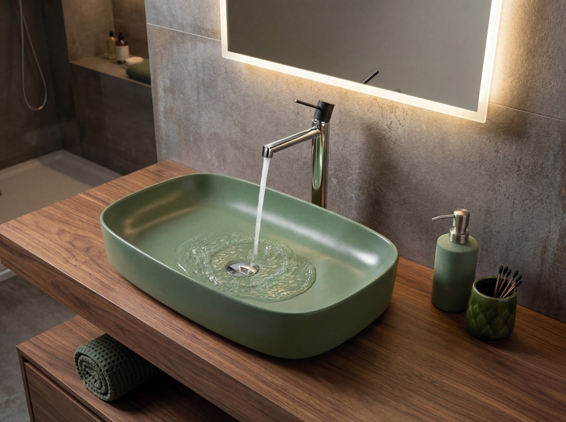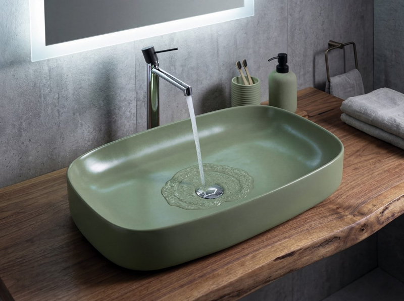 MATTEO keramické umyvadlo na desku 65x40cm, zelená mat