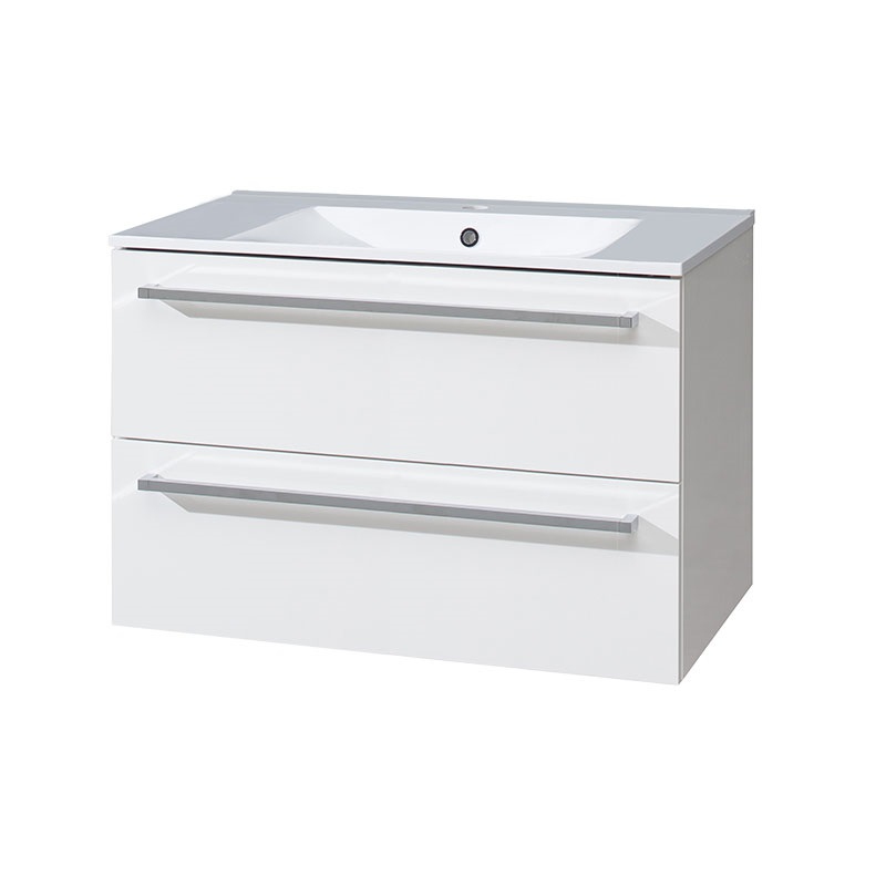 Bino, koupelnová skříňka s keramickým umyvadlem, 810x548x460mm, spodní, bílá lesk, CN661