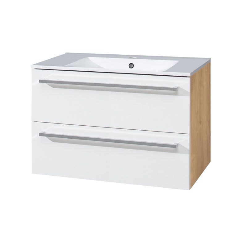 Bino, koupelnová skříňka s umyvadlem,810x548x460mm,spodní,bílá lesk/dub Arlington CN671