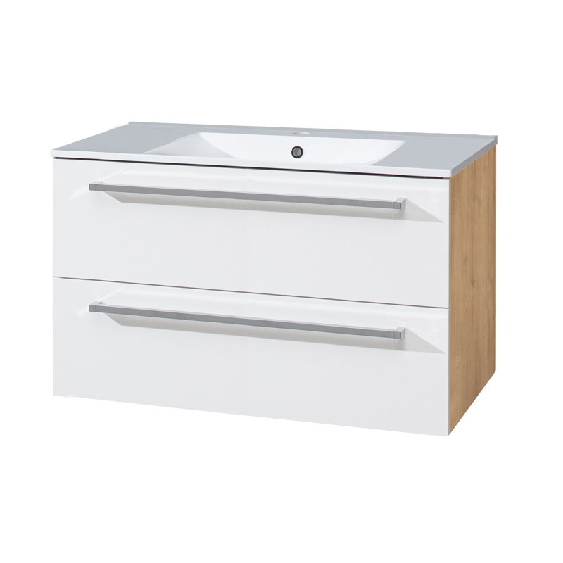 Bino,koupelnová skříňka s keram. umyvadlem,1010x548x460mm, bílá lesk/dub Arlington CN672