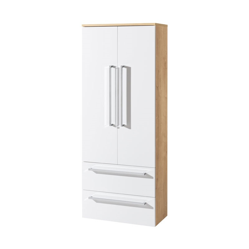 Bino koupelnová skříňka, závěsná bez nožiček, bílá/dub, 651x1630x330 mm CN679