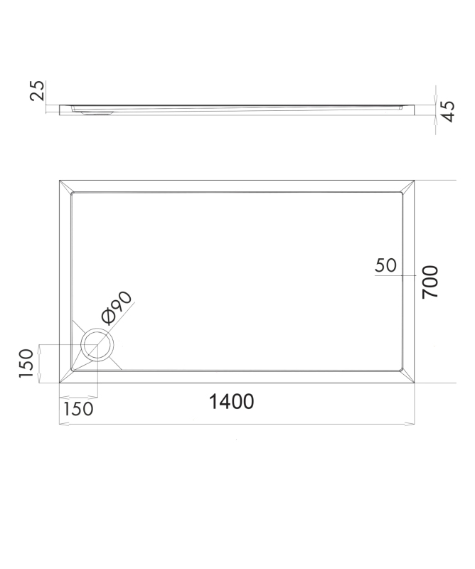 Omnires MERTON akrylátová sprchová vanička, 70 x 140 cm, bílý lesk MERTON70-140-PBP